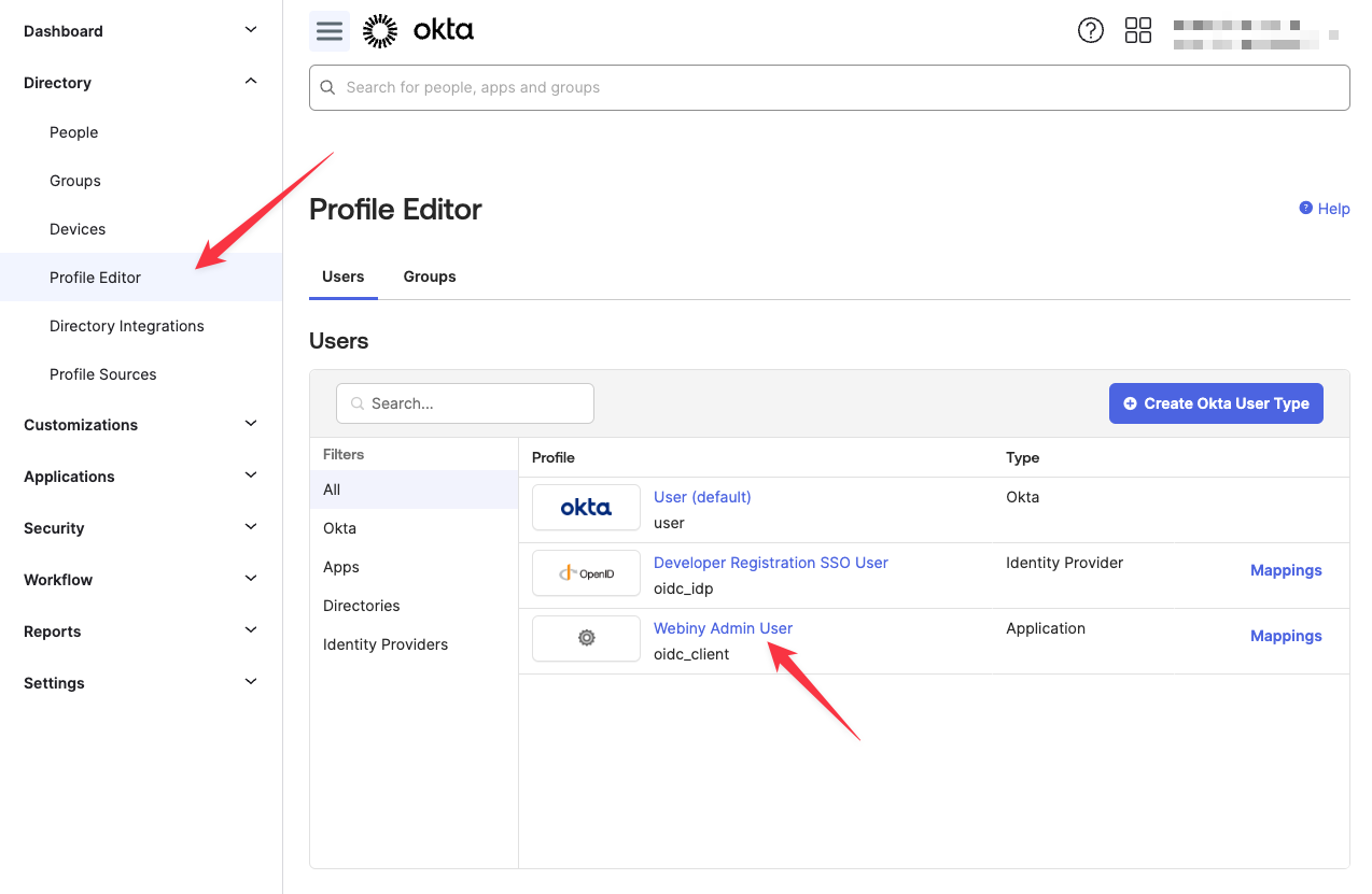 Navigate to Directory -> Profile Editor, find your OIDC app profile, and click it (click the profile name, not the “Mappings”, it’s a different thing).